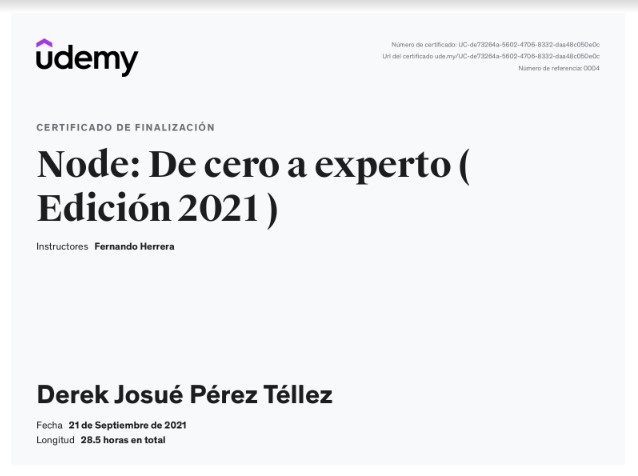 These certificates, as you can see, are certificates of completion. I have taken the courses on Udemy and since Udemy is not an accredited institution, the certificates do not have legal validity, but they do serve to demonstrate that I have completed the course that has given me the competent skills and abilities necessary for the development of websites, mobile applications and artificial intelligence models.